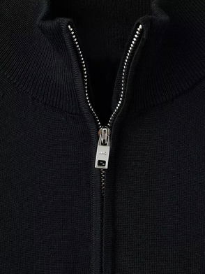 Cotton Knit Collar Zip-Through Cardigan, Black