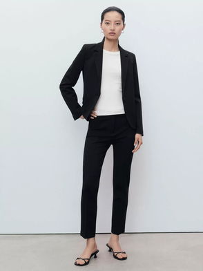 Liza Linen Blend Floral Print Straight Trousers, Black