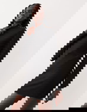 Button Detail Long Sleeve Knitted Mini Dress In Black