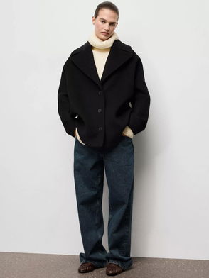 Faux Leather Jacket With Oversized Borg Collar In Black