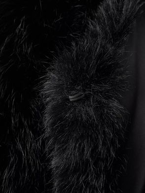 Faux Leather Long Jacket With Contrast Shaggy Trims In Black