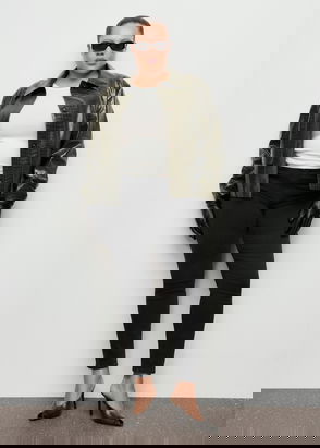 Featuring Kaia Gerber 100% Cotton Hotfix Barrel Jean In Black