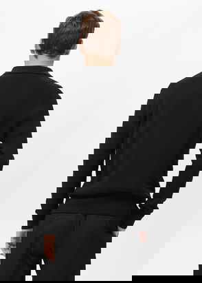 Wool Button Up Long Sleeve Knitted Polo Top In Black