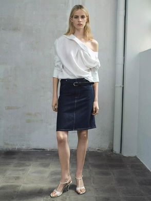 One Shoulder Soft Denim Top With Cinched Waist Co-ord In Indigo