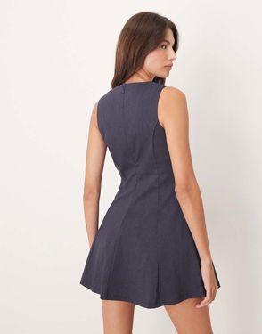 Tie Detail Fit And Flare Mini Shift Dress In Blue
