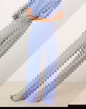 Pull On Cotton Trouser Co-ord In Blue And Pink Stripe