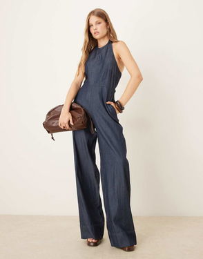 Cally Strapless Denim Jumpsuit, Dark Blue
