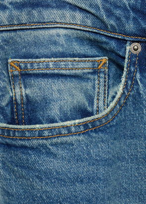 Gala Cotton Wide Leg Turned-Up Hem Cropped Jeans, Mid Blue