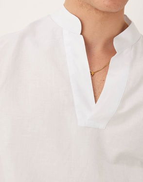 Open Collar Linen Mix Relaxed Shirt In Light Blue