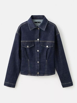 Cotton Cocoon Sleeve Cinched Waist Denim Jacket In Medium Blue