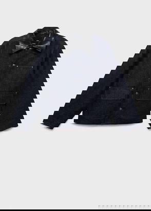 Zip Down Shirt Detail Denim Jacket With Borg Collar
