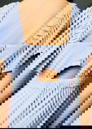 Kids' Paipai Cotton Blend Tiered Midi Dress, Medium Blue