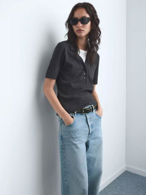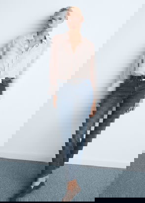 Cotton Seam Front Turn Up Straight Jean In Light Blue