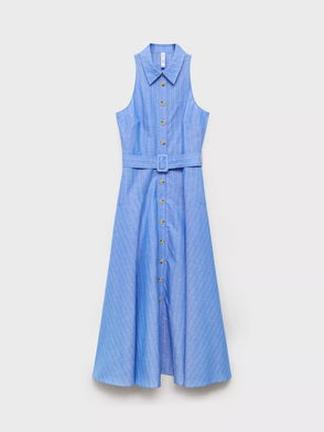 Dam Striped Linen Blend Shirt Style Dress, Medium Blue