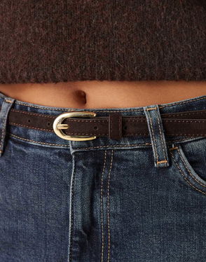 Slim Leather Belt In Dark Brown
