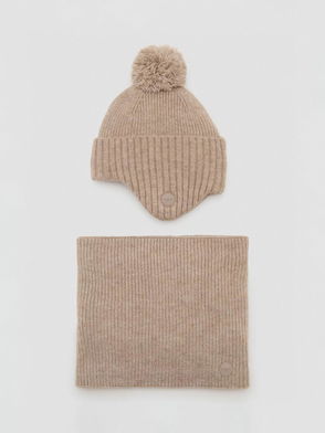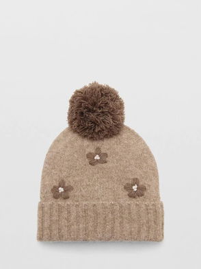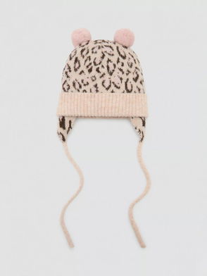 Baby Meow Pom-Pom Trapper Hat, Light Brown