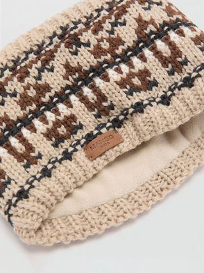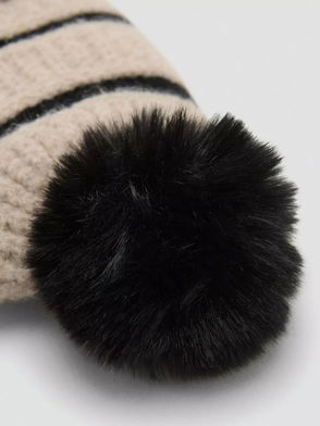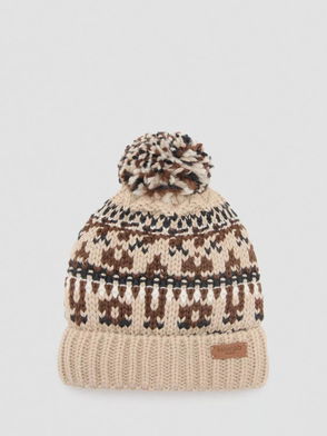 Kids' Alice Knitted Striped Bobble Hat, Light Brown