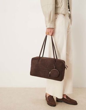 100% Suede Bowling Bag In Chocolate Faux Croc