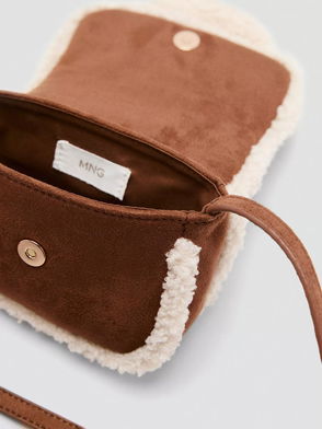 Faz Faux Shearling Crossbody Bag, Medium Brown