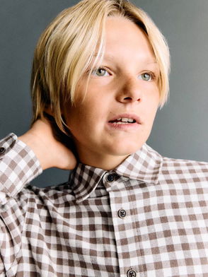 Kids' Raul Pure Cotton Long Sleeved Plaid Shirt, Brown