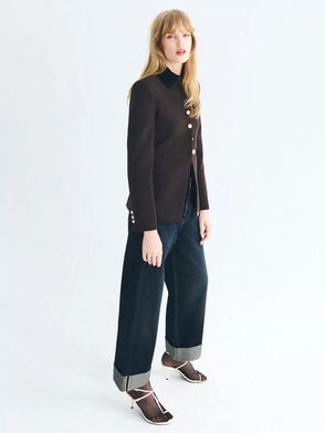 Slim Belted Waist Blazer Co-ord In Chocolate