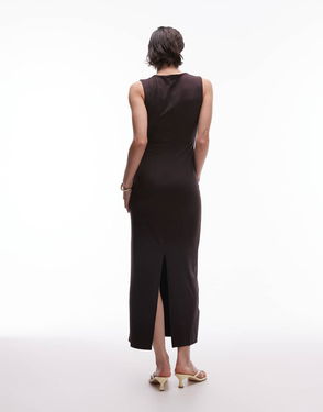 Straight Fit Round Neck Maxi Dress In Chocolate Brown