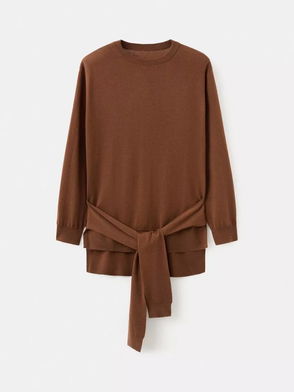 Belted Layered Knit Tunic Top, Caramel