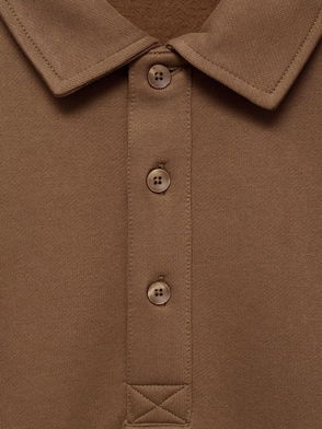 Cotton Blend Quilted Interior Polo Neck Jersey Top, Medium Brown