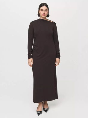 Vestido Asymmetric Drape Neck Maxi Dress, Chocolate