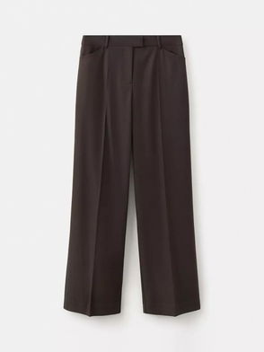 Mid Rise Pleated Wide Leg Trousers, Brown