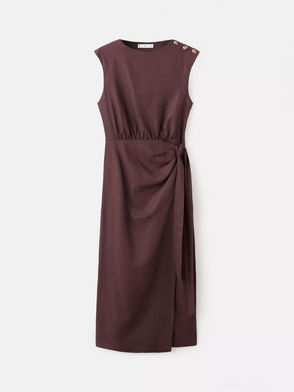 Gin Button Shoulder Linen Rich Dress, Dark Brown