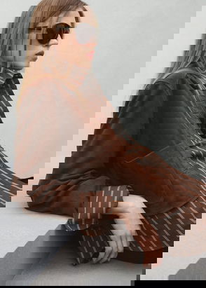 Cropped Long Sleeve Textured Jacket, Brown