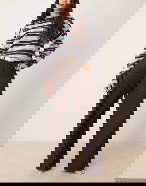 High Waist Check Wide Leg Trousers, Brown