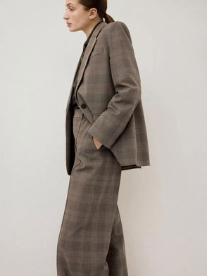 Check Tailored Blazer, Brown