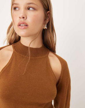 Cuiner Asymmetric Neckline Jumper, Dark Brown