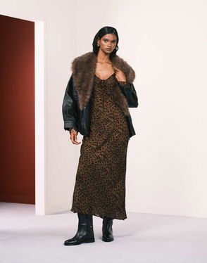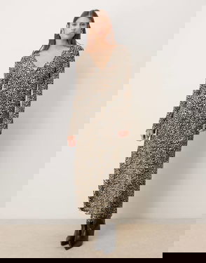Long Sleeve Tie Detail Maxi Dress In Leopard Print