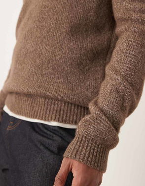 Wool Blend Quarter Zip Knitted Jumper In Brown