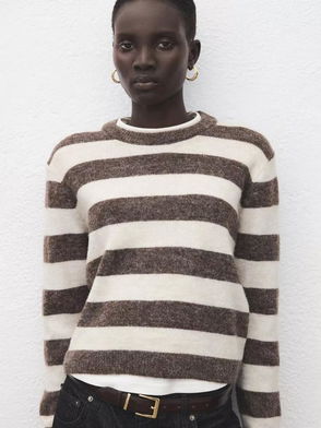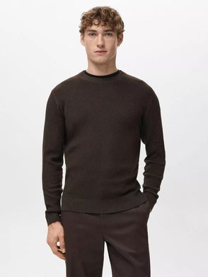 Crew Neck Rib Relaxed Fit Jumper, Brown