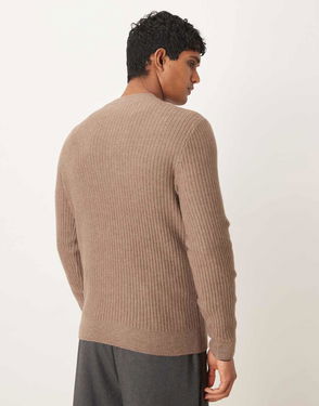 Classic Relaxed Fit Ribbed Jumper In Latte