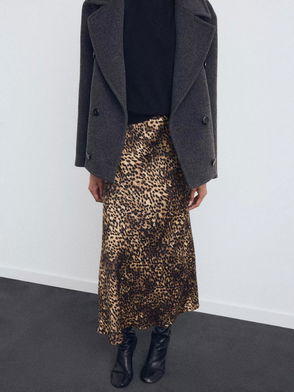 Laure Gathered Waist Animal Print Maxi Skirt, Brown