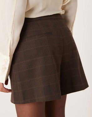 Klimt Asymmetric Mini Skirt Co-ord In Brown Check