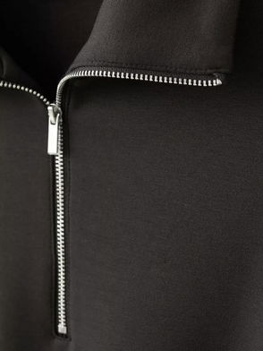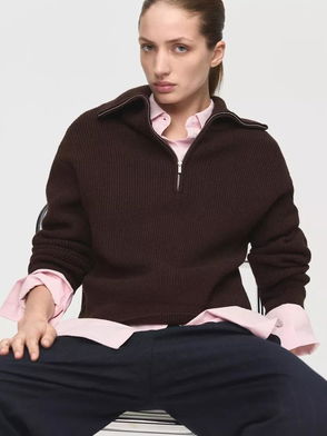 Zip Neck Ribed Sweatshirt, Chocolate