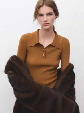 Collared Rib Knit Top, Tobacco