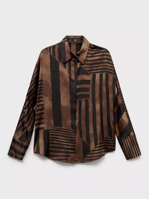 Adriana Pure Silk Satin Shirt, Medium Brown