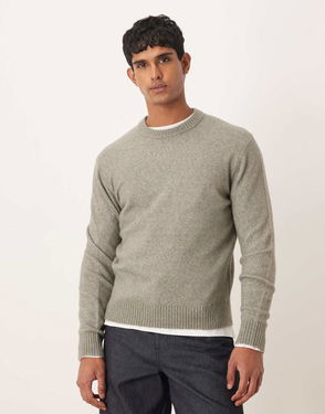 Wool Mix Knitted Crew Neck Jumper In Sage Green