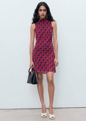 Draped Neck Printed Dress