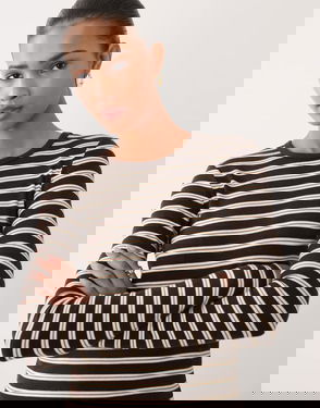 Cotton Mix Long Sleeve T-shirt In Brown And Cream Stripe
