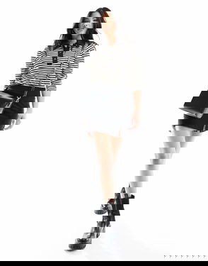 Thin Stripe Polo Top In Black