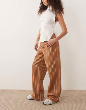 Julene 100% Cotton Straight Baggy Jean In Brown Stripe