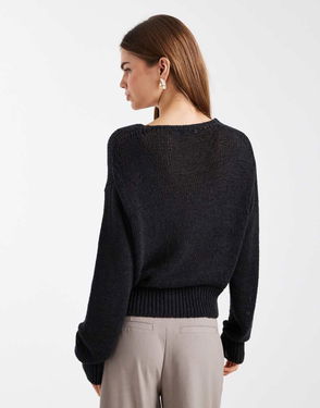 Teen Cotton Mix Seam Detail V Neck Jumper In Charcoal